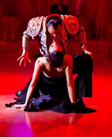 The Paso Doble (meaning "double-step" in Spanish) refers to a style of ballroom dancing included in DanceSport categories of competition that began in the 16th century in the country of France. This dance became popular in Spain because it became based on the sound, drama, and movement of the Spanish and Portuguese bullfights.
